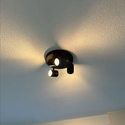 - Verstelbare spots: De lampkoppen zijn draaibaar en kantelbaar, zodat je het licht precies daar kunt richten waar je het nodig hebt.