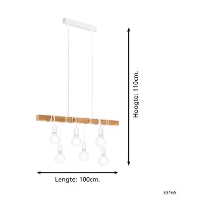 Beschrijving Eglo Hanglamp Townshend Staal Wit Hout | IP20 - Geschikt voor 6x E27