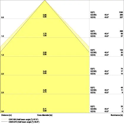 ![]() De kleurcode is een combinatie van de kleurweergave (CRI) en lichtkleur (Kelvin). Het eerste getal is de kleurweergave (1 = zeer slechte kleurweergave, 9 = maximale kleurechtheid). Het tweede en derde cijfer betreft de lichtkleur. Een lamp met kleurcode 830 heeft bijvoorbeeld een goede kleurweergave en straalt een warm wit licht uit (3000K), waar een lamp met de kleurcode 940 een uitstekende CRI heeft en een koel wit licht (4000K) uitstraalt. |
