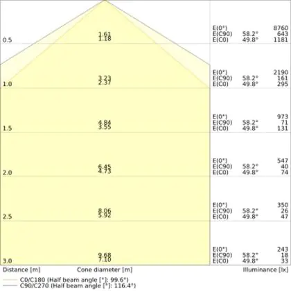 De lichtopbrengst (Lumen), geeft weer hoe krachtig het uitgestraalde licht is. Dit is belangrijk om te weten om de juiste sfeer te creëren. 0 tot 400 Lumen is bij uitstek geschikt voor accent- of sfeerverlichting. Een hoger aantal Lumen is, afhankelijk van de grootte van de ruimte, beter geschikt als ondersteunende- of basisverlichting. Heb je plafonds hoger dan 4 meter, dan is een lichtopbrengst van minimaal 8000lm aan te raden indien heldere verliching gewenst is (vb. in werkomgevingen).