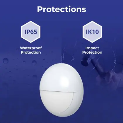 Een belangrijk element van LED plafondlampen is de IP waarde. Dit getal geeft de mate van bescherming aan tegen binnendringen van stof en vocht/water. Vanaf IP65 is het stof- en waterdicht. De IP waarde van deze LED plafondlamp is: IP65 - Stof- en Waterdicht. Ben je op zoek naar een LED plafondlamp voor buitengebruik? Dan voldoet een product met een IP44 waarde (spatwaterdicht) al. Meer baat bij een product met een ander IP waarde? Klik dan hier voor ons complete assortiment aan LED plafondlampen en gebruik het zoekfilter 'IP waarde' aan de linkerkant van de pagina. Let bij het plaatsen van een LED plafondlamp in de buitenlucht ook op de IK waarde (slagvastheid). De IK waarde van deze LED lamp is: IK10 - 20 Joule.