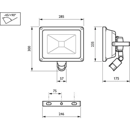 De IP-waarde zegt iets over mate van stof- en waterdichtheid van een armatuur. Het eerste cijfer betreft de stofdichtheid; schaal van 0 (geen bescherming) tot 6 (volledig beschermd). Het tweede cijfer betreft de waterdichtheid; schaal van 0 (geen bescherming) tot 8 (volledig beschermd). Dit armatuur is IP54 - Stof- en Spatwaterdicht. De IK-waarde geeft weer hoe goed de LED breedstraler is beschermd tegen schokken. Deze schaal loopt van 00 (niet beschermd) tot 10 (beschermd tegen hevige schokken en vandalisme). Deze LED floodlight heeft een IK07 - 2 Joule waarde.