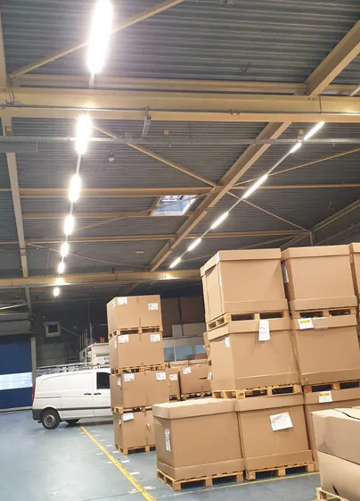 Een goed verlicht magazijn waar werknemers met plezier werken. Dit was het doel waar Polytec Composites in zijn magazijn in Roosendaal naar streefde. Polytec Composites is een gespecialiseerd bedrijf dat kunststof bodemplaten produceert voor de automobielindustrie met zeer gerenommeerde klanten, waaronder Mercedes en Audi. En een goed ingericht en efficiënt magazijn is dan vitaal! Maar het bedrijf kampte met een probleem: er was beperkte en ongelijkmatige lichtverdeling in een magazijn waar continue een verloop van personeel en voorraad is. Niet erg handig en ook niet efficiënt. Zaak om hier iets aan de te doen, dus! Onze vaste klant, die verantwoordelijk was voor het installeren van de nieuwe verlichting, riep onze hulp in om hem bij dit project te ondersteunen. En daar kunnen wij uiteraard bij helpen!